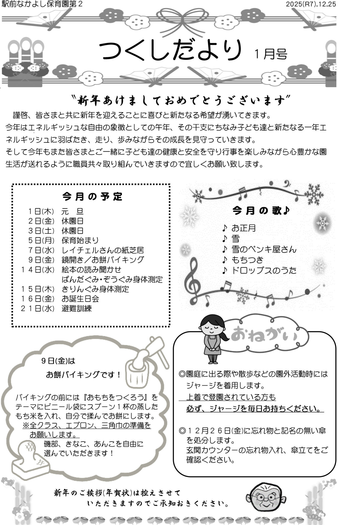 【第2園】つくしだより 2026年1月号